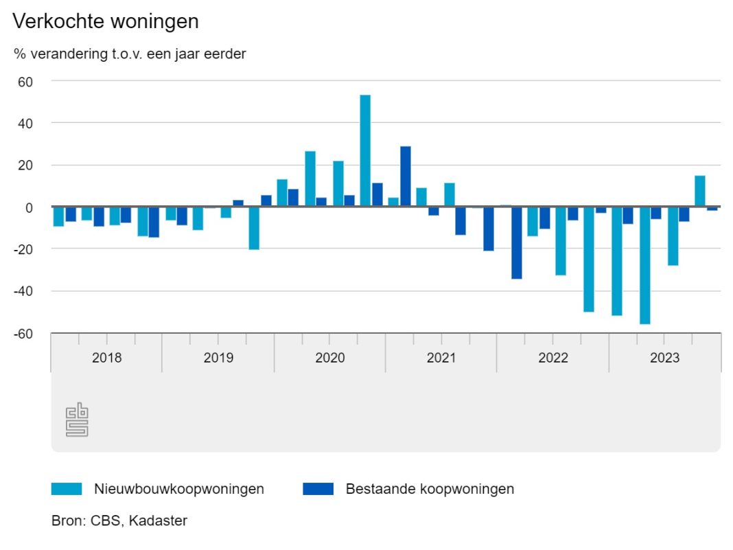 VOORBURG – In het vierde kwartaal van 2023 steeg het aantal verkochte nieuwbouwwoningen naar 6.100, 15 procent meer dan een jaar eerder. Ondanks deze toename is het totaal aantal verkochte nieuwbouwwoningen in 2023 met 16.600 het laagste in de afgelopen vijf jaar.